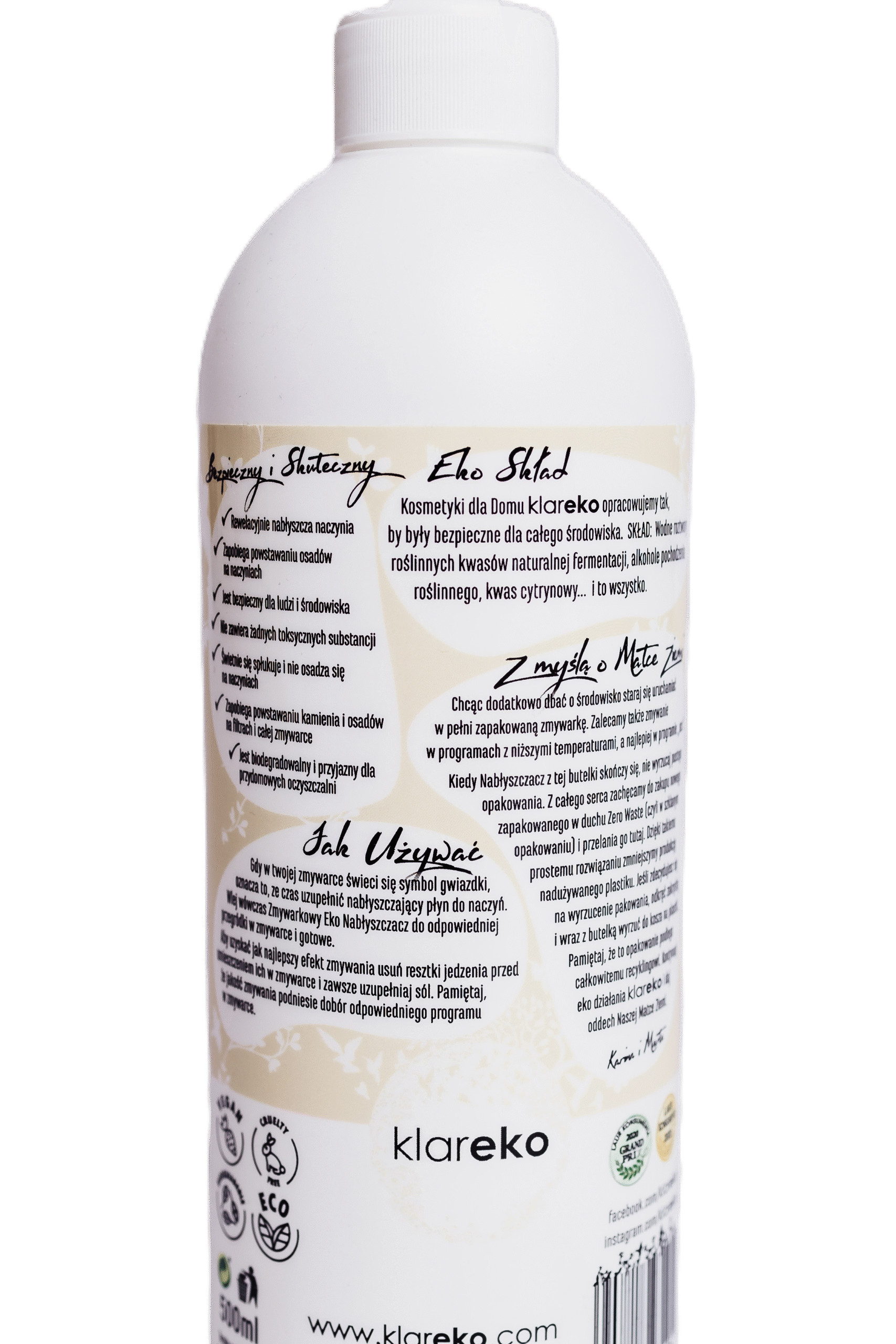 Każdą substancję Zmywarkowego Eko Nabłyszczacza dobraliśmy nadzwyczaj starannie. Dzięki temu Nabłyszczacz klareko:
