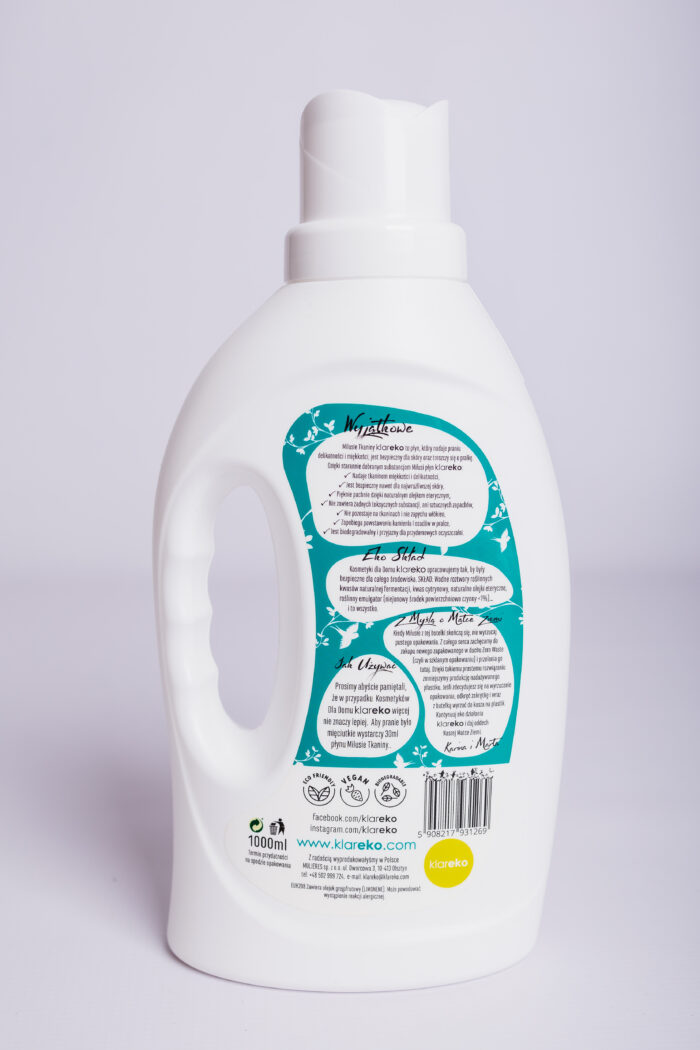 Przedstawiamy Wam Milusie Tkaniny KLAREKO. Płyn do płukania, który nadaje praniu delikatności i jest bezpieczny dla skóry.
